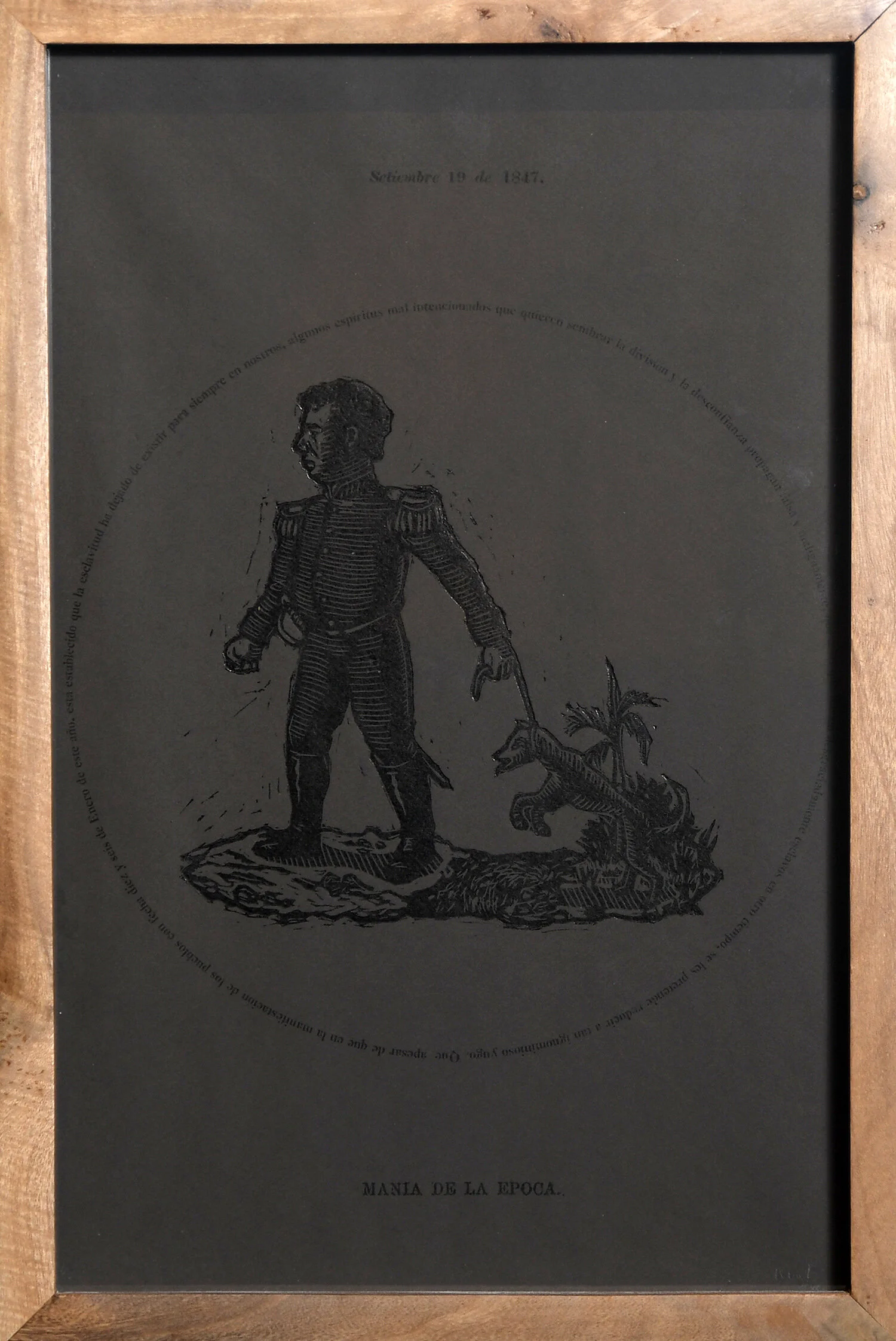 La obra tiene una lectura no necesariamente lineal donde Morbán contextualizar la época, ilustrar los pocos hechos de los que hay documentación e interpretar lo que sucedió posteriormente mediante poesía visual. El enmarcado también tiene un sentido. Dos grabados, el retrato de Santiago Basora y su carta de ascenso a coronel, tienen marcos de caoba, la madera nacional. Los grabados que recrean documentos de circulación habitual de aquel entonces, tales como periódicos, manifiestos y decretos públicos, son de roble criollo. Y las imágenes donde me di más libertad poética son de otra madera local, la acacia.
